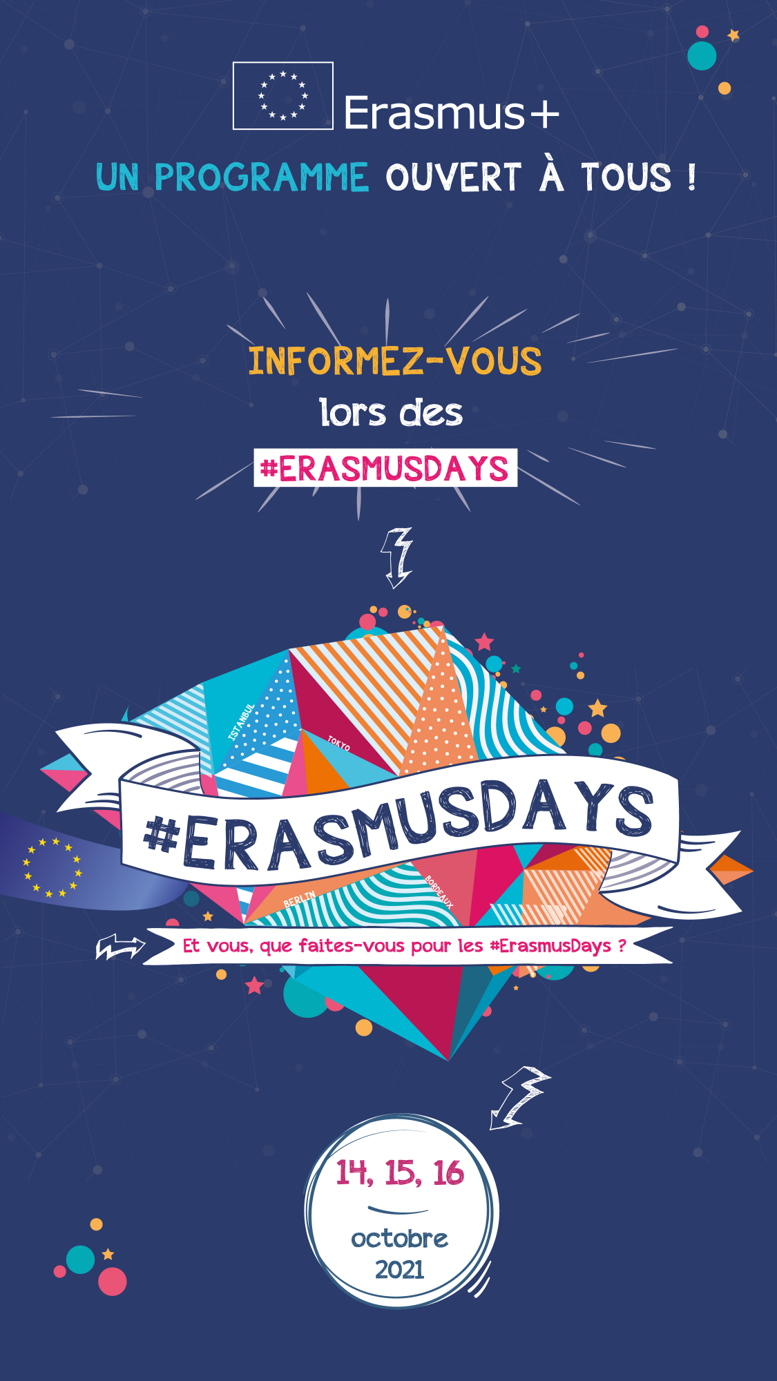 L'École participe aux ERASMUSDAYS, une série de vidéos sera diffusée sous l’amphithéâtre, des échanges entre étudiants auront lieu.