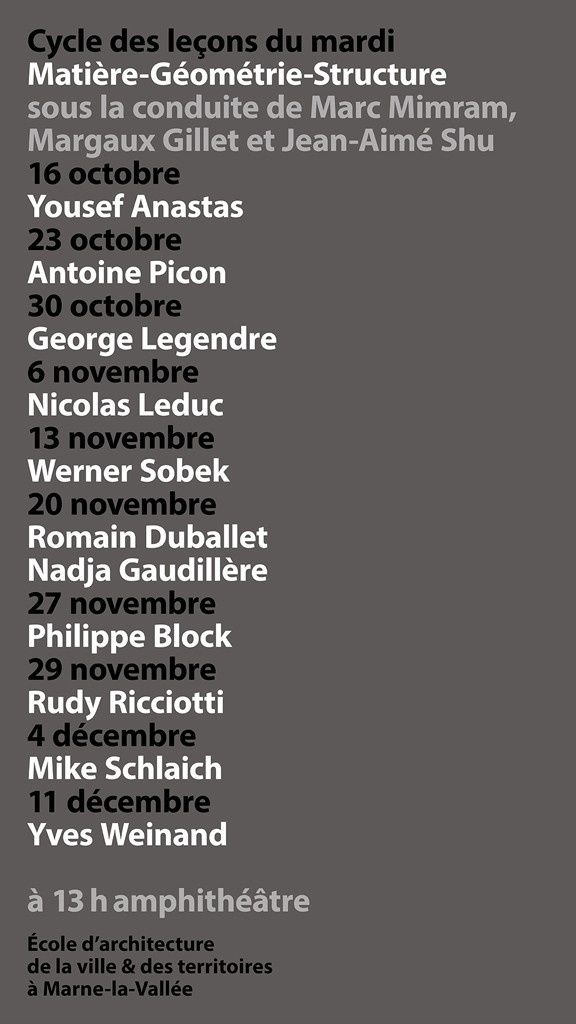 Nous souhaitons interroger cette évolution en invitant les représentants de la discipline afin de conforter la construction dans le champ théorique de l’architecture et d’installer la matérialité dans la réflexion fondatrice du projet.