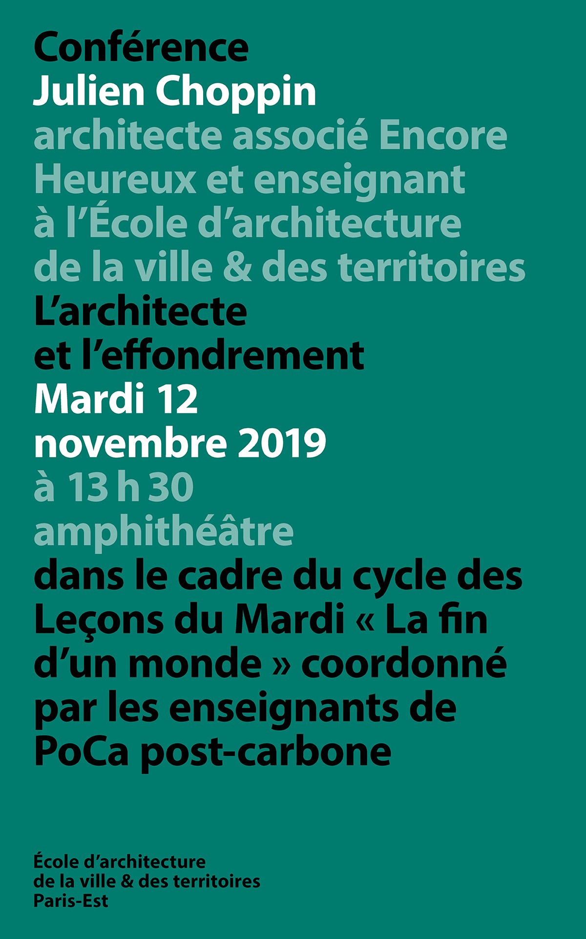 Cette conférence s'inscrit dans le cadre du cycle des Leçons du Mardi intitulé "La fin d’un monde", coordonné par Jean-François Blassel et l'équipe pédagogique de la formation PoCa post-carbone.
