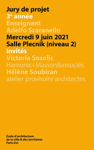 Enseignant Adelfo Scaranello Invitées Victoria Sosolic, Hamonic+Masson&associés Hélène Soubiran, atelier provisoire architectes
