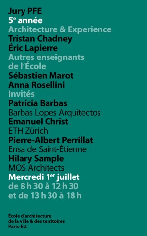 Architecture & Experience Tristan Chadney Éric Lapierre Autres enseignants de l’École Sébastien Marot Anna Rosellini Invités Patrícia…