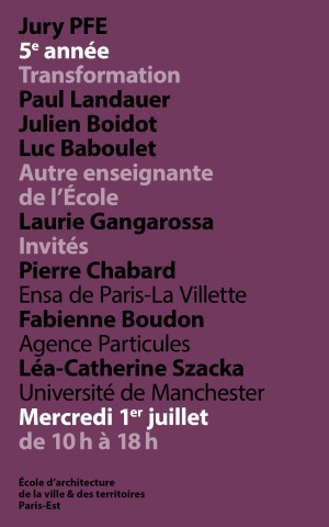 Transformation Paul Landauer Julien Boidot Luc Baboulet Autre enseignante de l’École Laurie Gangarossa Invités Pierre Chabard Ensa de…