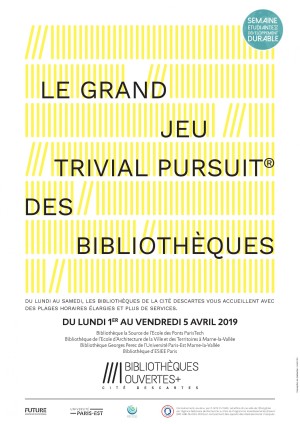 au 05.04.2019Campus universitaire de la Cité DescartesÀ l’occasion de la Semaine Étudiante du Développement Durable, les bibliothèques de la Cité Descartes (ESIEE, UPEM, ENPC, ÉAV&T) vous…