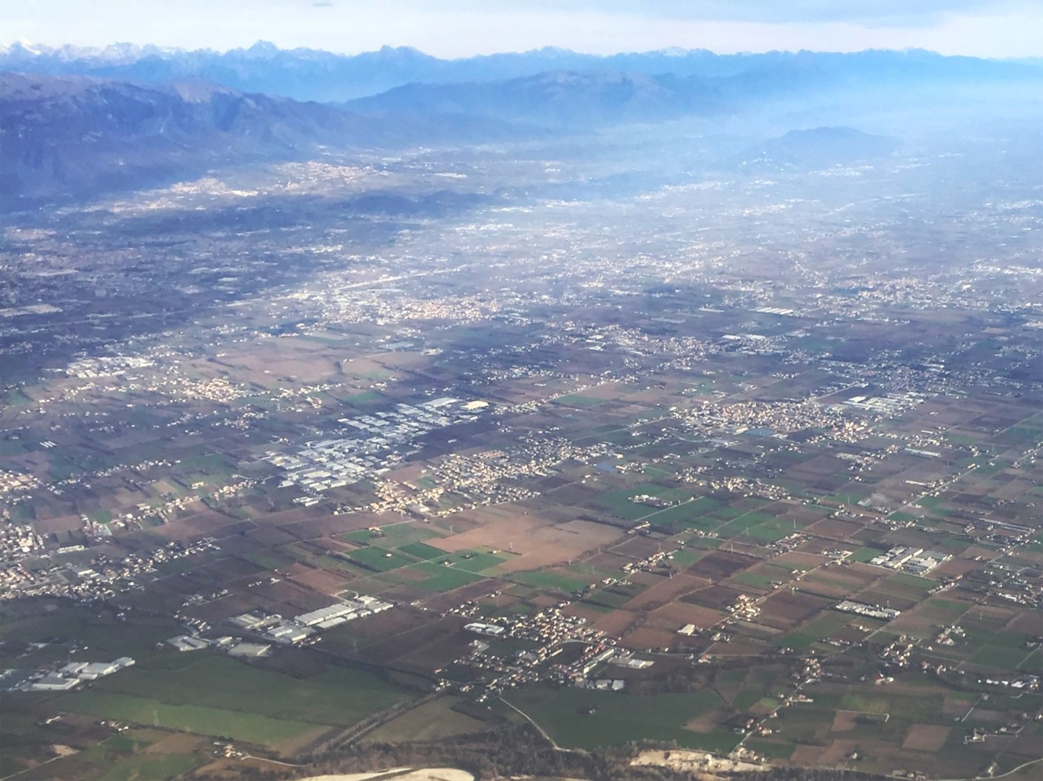Alessandra Marcon, Le territoire hybride urbain-rural de la plaine centrale vénitienne, focus sur la haute plaine sèche du Brenta e du Piave, sur le fond les Préalpes vénitiennes et les Dolomites, 2024