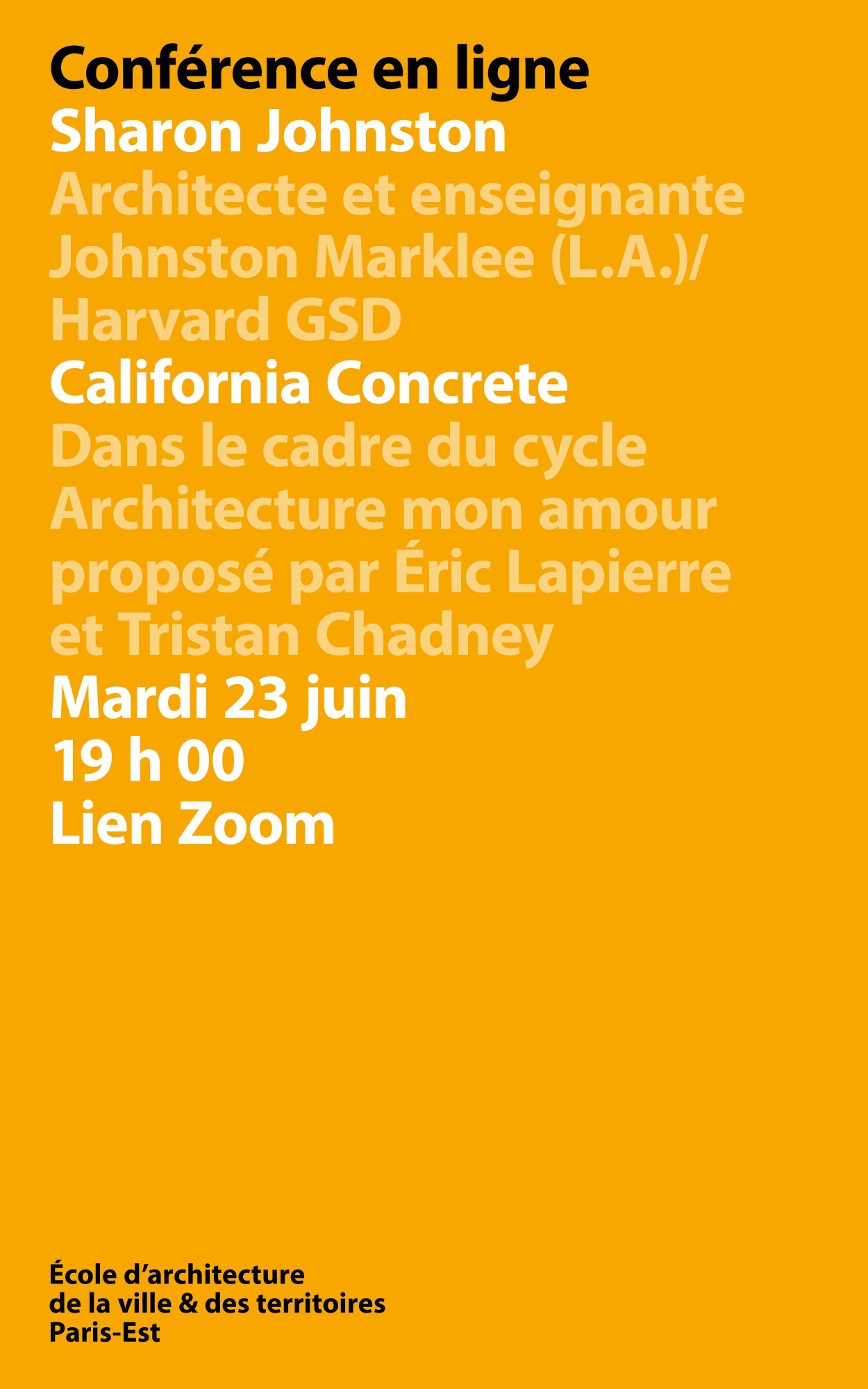 Dans le cadre du cycle de conférences Architecture mon amour, l'architecte Sharon Johnston nous donne une conférence exceptionnelle intitulée "California Concrete".