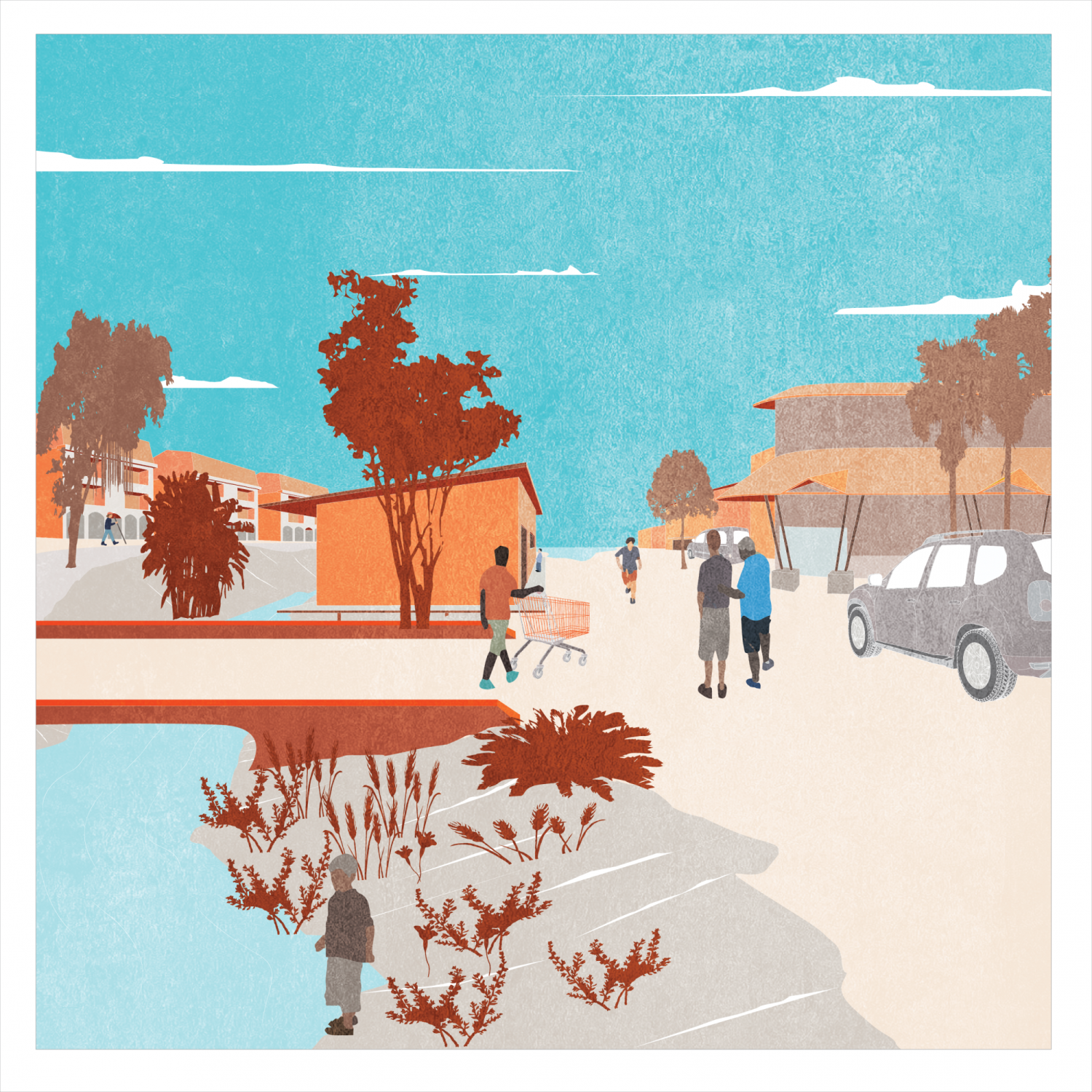 La commune du Robert, se déployant entièrement autour de sa baie, a connu une urbanisation récente majoritairement orientée vers le littoral. Cette situation a priori privilégiée se révèle toutefois être un lieu de concentration des aléas et des dynamiques naturelles liées à l’eau et au sol. Il semble aujourd’hui difficile de concilier un développement urbain littoral tout en garantissant la sécurité à long terme des populations exposées aux aléas naturels. Au-delà des risques pour l’homme, l’urbanisation de la commune du Robert entraîne aujourd’hui une pression importante sur le milieu fragile de la baie, véritable support de vie et d’activité pour la commune. En effet, l’urbanisation du fond de baie a progressivement canalisé, parfois obstrué, les embouchures des différentes rivières qui se jettent dans la baie. Si ce milieu entre terre et mer est particulièrement riche et attractif, il est aussi très vulnérable. La proposition envisagée pour répondre à cette étude est la suivante : assurer les continuités écologiques entre rivières et baie tout en accompagnant le déplacement des populations menacées le long des lisières bordant chaque bassin versant. En privilégiant une lecture attentive du territoire, de sa géographie, de ses paysages, de ses habitats, l’étude entrevoit dans la question des risques l’opportunité de remettre l’eau au centre de tous les regards. Face aux difficultés liées à la question de la relocalisation des personnes exposées aux aléas naturels, à court comme à long terme, nous avons souhaité apporter des réponses qui s’inscrivent dans les manières si particulières d’habiter la baie du Robert ; en permettre la perpétuation tout en accompagnant leur métamorphose patiente.