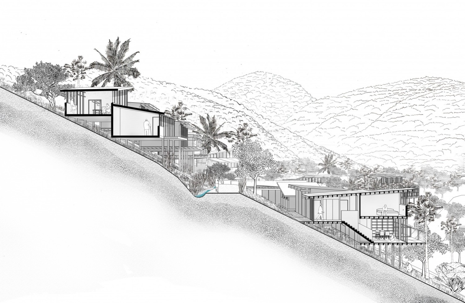 Houle cyclonique et élévation du niveau marin, autant de dynamiques naturelles qui incitent aujourd’hui à reconsidérer notre relation au littoral. Fortement urbanisé au cours de ces dernières années, celui-ci se retrouve de plus en plus menacé. C’est dans ce contexte que la DEAL de la Martinique et la commune du Carbet se sont associés au DSA d’architecte-urbaniste pour mener une réflexion sur l’adaptation du Carbet aux impacts du changement climatique. à la suite des études DSA menées sur Le Prêcheur et La Trinité, cette étude constitue le troisième volet martiniquais de la dynamique Imaginer le littoral de demain, initiée par le Puca. Partant de cette problématique initiale, l’étude cherche à développer des solutions positives susceptibles de mettre en valeur les richesses inexploitées du Carbet. Fondée sur une vision prospective qui se déploie jusqu’en 2100, l’étude se donne pour objectif de révéler des futurs possibles pour enclencher dès aujourd’hui un développement aussi vertueux que durable. La géographie et les dynamiques hydro-sédimentaires, mais aussi les nombreuses initiatives alternatives identifiées sur le territoire du Carbet, sont au centre de ce scénario. Le Carbet, territoire d’expérimentation aux paysages multiples, est mis en valeur à partir diverses richesses : diversité des usages entre littoral, coteaux et pitons, naissance d’un tourisme vert, fertilité des sols agricoles, ressources naturelles ou encore éléments patrimoniaux sont les composantes de l’identité singulière du Carbet. L’étude propose des solutions s’appuyant sur l’existant, respectueuses des manières d’habiter, d’exploiter les sols et de gérer les ressources. Ces propositions dévoilent une vision à la fois économe et positive. Elles tentent d’améliorer le cadre de vie des habitants tout en opérant un léger « pas de côté ».