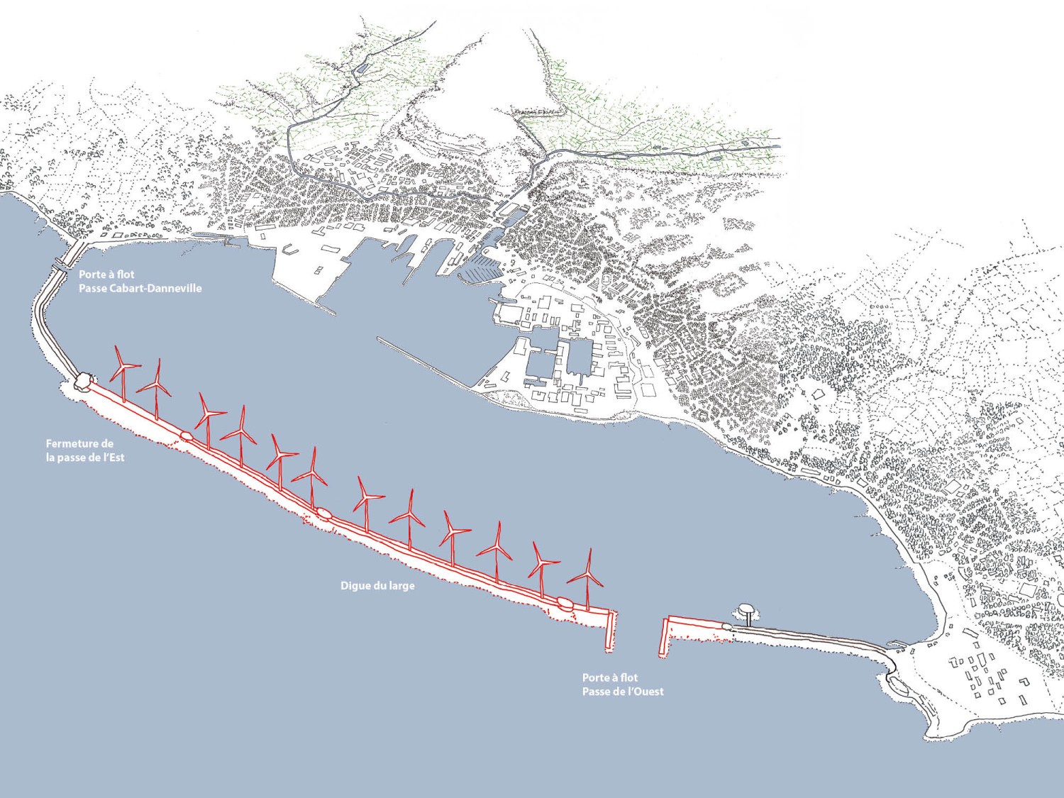 En se détachant des limites administratives et profitant de la nouvelle réorganisation territoriale, le projet amorce une réflexion prenant en compte la totalité du territoire afin d’établir une vision commune permettant l’adaptation de Cherbourg-en-Cotentin aux risques littoraux.