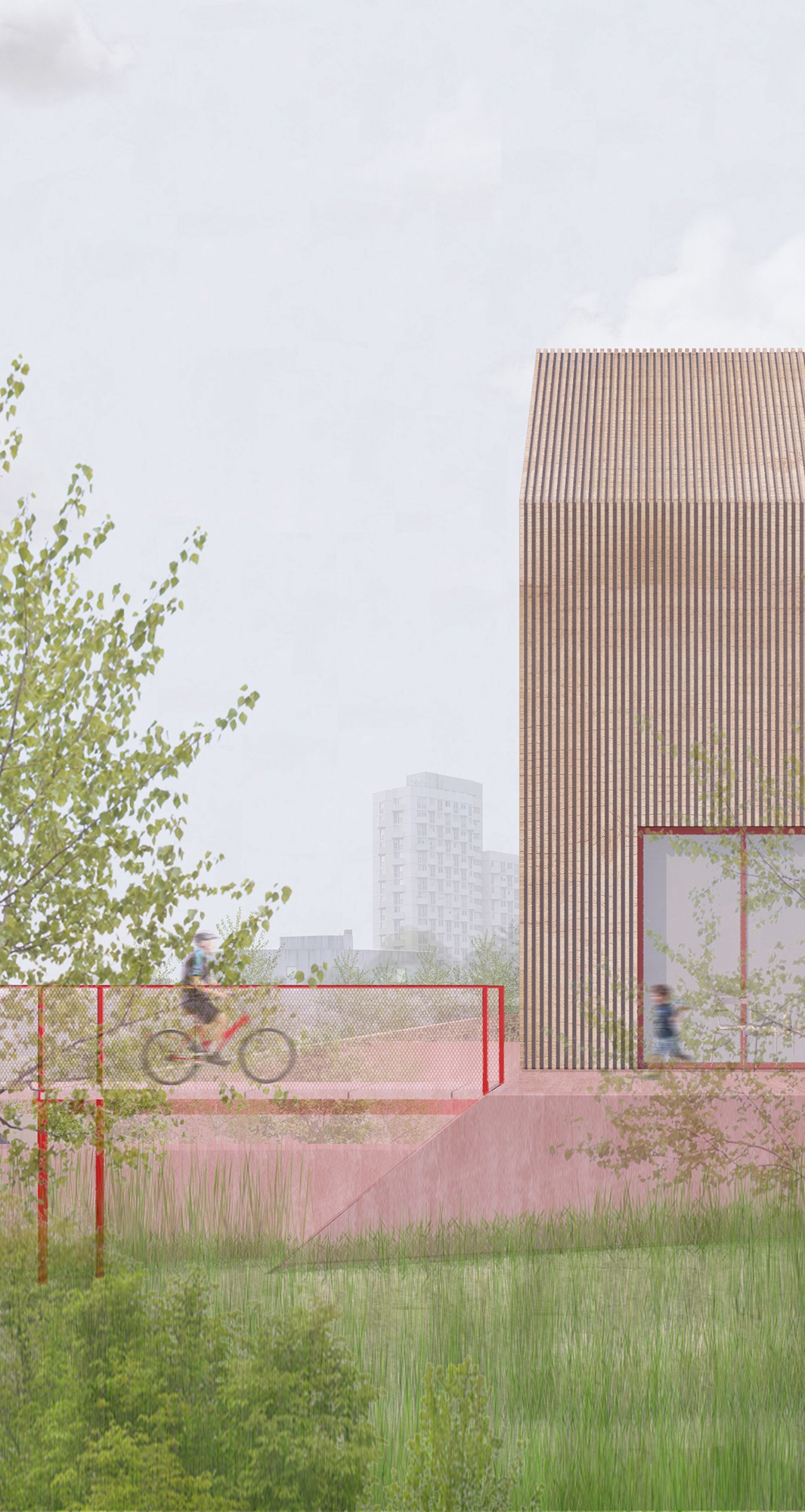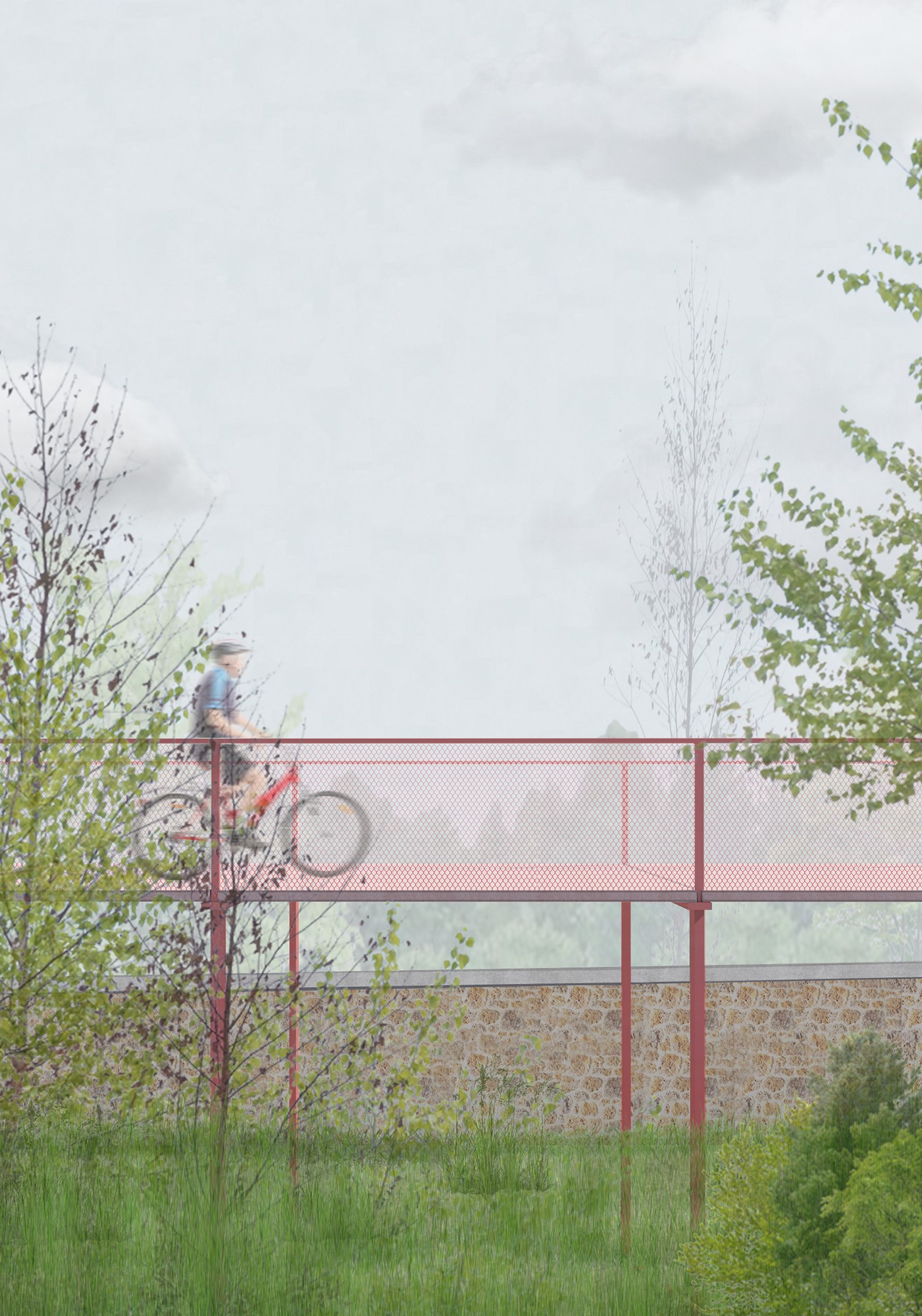 Infrastructure de mobilité majeure, le tramway T1 sera prochainement prolongé vers l’Est francilien. De Noisy-le-Sec, il rejoindra Val de Fontenay, pôle métropolitain en pleine intensification aménagé par la SPL Marne au bois. C’est aux abords et dans le prolongement de cette étude qu’elle souhaite penser l’aménagement de l’arrêt Victor Hugo et d’en comprendre ses enjeux. Située sur l’actuel rond-point de l’avenue Victor Hugo au bord de l’autoroute A86 et à la rencontre de trois communes, Montreuil, Rosny-sous-Bois et Fontenay-sous-Bois, sa situation particulière au cœur d’un site de confins rend cet arrêt singulier. L’arrivée de cette nouvelle mobilité est alors l’opportunité d’explorer le rôle que peut tenir ce site dans la métropolisation contemporaine de l’Est parisien, autant à l’échelle territoriale qu’implique le tramway qu’à l’échelle locale qu’implique son arrêt. Cette étude est l’occasion de réévaluer les relations de synergie entre des grands pôles de mobilités tel que Val de Fontenay et des arrêts secondaires qui composent le maillage dense des transports publics du Grand Paris. A partir de l’objectif de la commande d’explorer les devenirs de l’arrêt de tramway Victor Hugo le projet développe deux intentions : d’une part proposer une alternative à la densification et la valorisation foncière qui sont à l’œuvre aux abords des arrêts de transport public, d’autre part, de considérer la ligne de tramway comme un levier pour l’aménagement de l’espace public avoisinant, offrant un espace ouvert salutaire en marge des grandes polarités métropolitaines.