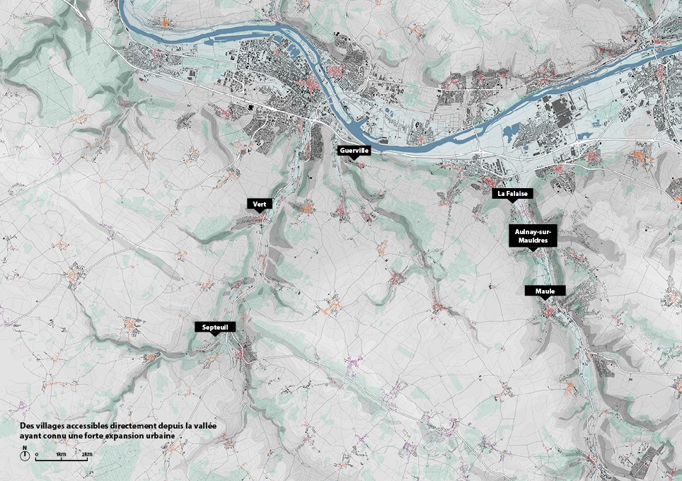 Son écriture est l’occasion de mettre en place une règle simple mais robuste qui contraint l’expansion urbaine pour mieux valoriser le paysage. Comment les nécessaires transformations du territoire peuvent-elles participer à valoriser le patrimoine paysager et bâti du plateau mantois ? La démarche que nous proposons fait de la transformation du territoire une opportunité pour générer la règle par la projet et pour rendre l’inventaire du patrimoine opérationnel en le liant directement aux potentiels d’évolution du territoire.