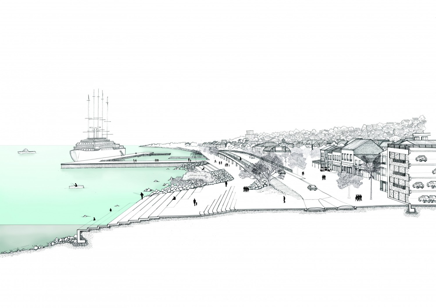 En Guadeloupe, face à la mer des Antilles, les villes de Baillif, Basse-Terre et Gourbeyre sont coupées de leur rivage par de grandes infrastructures héritées des aménagements du XXe siècle. Le front de mer se résume à la route littorale et aux enrochements. Coincée entre une voie rapide et un rivage presque entièrement artificialisé, la promenade de bord de mer est aujourd’hui délaissée par les touristes comme par les habitants qui ont fini par « tourner le dos à la mer ». Commanditée par ces trois communes ainsi que par la DEAL de Guadeloupe, cette étude cherche à rendre à la ville son littoral et à transformer l’image de sa façade maritime. Le défi du projet réside dans sa capacité à associer enjeux territoriaux et locaux, logiques de flux et logiques d’usage, au sein d’un aménagement littoral unificateur. La bande côtière des communes littorales françaises, et a fortiori dans les îles volcaniques, est très contrainte. Elle demeure cependant l’espace d’articulation privilégié des différentes pièces urbaines et paysagères qui composent le littoral. Au sein d’un territoire morcelé, entrecoupé par les ravines et les routes, cette propriété devient essentielle. En prenant appui sur les tissus urbains, la géographie et les infrastructures, l’étude propose une manière de reconstruire une continuité littorale et tente de réconcilier les villes avec leur rivage.