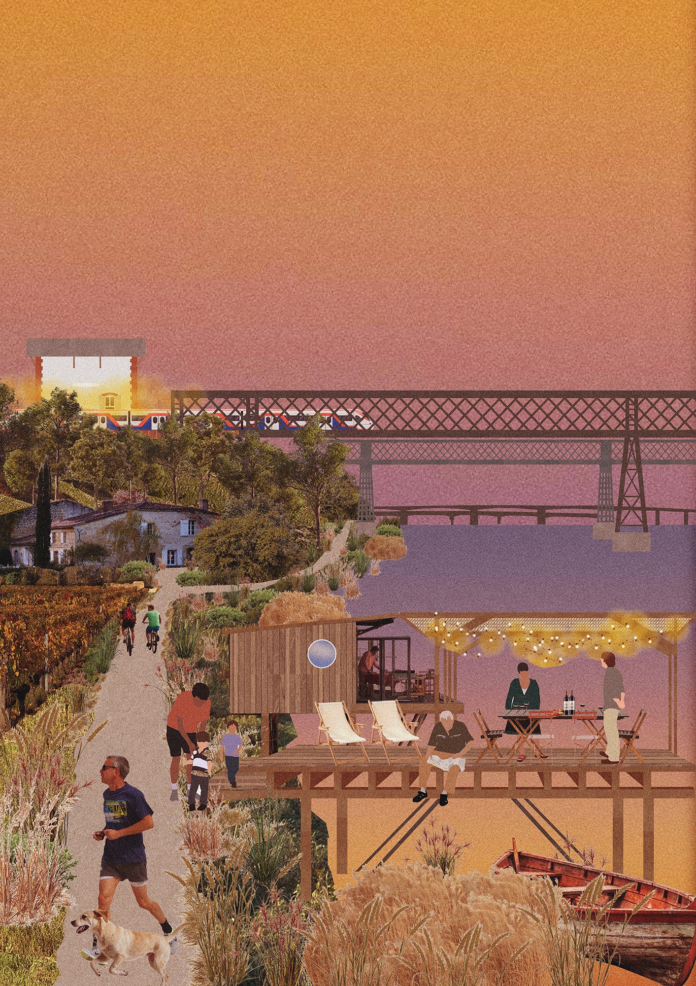 Le futur Service express régional métropolitain (SERM) de Bordeaux vise à relier 47 gares en Gironde, redonnant une place centrale au train dans les mobilités du quotidien. À travers l’exemple d’une ligne et l’exploration sensible du territoire, cette étude propose de dépasser la seule logique de l’efficacité infrastructurelle pour envisager la gare comme lieu de vie, point d’ancrage pour les centralités locales et levier d’aménagement durable. Rassemblées selon de nouvelles typologies, les gares incarnent la fabrique de la ville et la perpétuelle redéfinition du lien entre habitant.e.s, usager.e.s et territoire. Le déplacement devient une expérience enrichie de l’ordinaire du quotidien.
