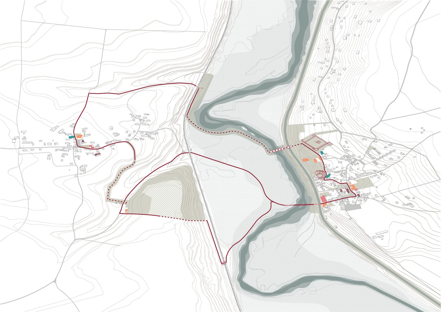 Les communes de Drevant et La Groutte, situées en région Centre-Val de Loire, dans le département du Cher, sont l’objet de cette étude. Pour ne pas dépérir face à la concurrence des territoires métropolitains, ces deux villages affichent la volonté de valoriser leur patrimoine afin de renforcer leur attractivité. Implantées sur les deux versants opposés de la vallée du Cher, les deux communes sont liées par une histoire commune, dont les sites les sites hérités les plus remarquables sont l’oppidum des Murettes à La Groutte et le site gallo-romain de Drevant. La première partie de l’étude permet de retracer les différentes étapes de la formation des deux communes. Les implantations historiques successives ont toutes su mettre à profit les richesses naturelles du site, telles que la topographie et la présence de l’eau. C’est ce patrimoine de la ressource et le paysage qui lui est associé, que le projet cherche à valoriser. Dans un second temps, l’étude propose une balade le long de la vallée, et une traversée depuis ses hauteurs, pour saisir la configuration territoriale des deux communes. Cela permet d’identifier leurs différentes entrées et la spécificité de leur portion paysagère. Enfin, cette vallée génère une certaine attractivité, avec le passage de nombreux sentiers touristiques départementaux ou régionaux, auquel le projet va chercher à s’accrocher. L’étude aboutie a la proposition d’un projet consistant en la création d’un nouveau parcours à Drevant et La Groutte. Celui-ci prend la forme d’une boucle qui intègre les différents sites patrimoniaux, les espaces publics, les services existants, et des équipements propices à la mutation. Sur cette boucle sont identifiés six sites structurants où des interventions architecturales et paysagères sont proposées. Si elles participent largement au développement d’une activité touristique, ce n’est pas leur finalité première. En effet, elles visent avant tout à améliorer le cadre de vie des habitants. Ainsi, ces aménagements ne se focalisent pas sur un ensemble d’objets à restaurer, mais considèrent plutôt les sites comme des pièces paysagères qui s’insèrent dans le théâtre géographique de leur vallée.Commanditaire(s) de l’étude
