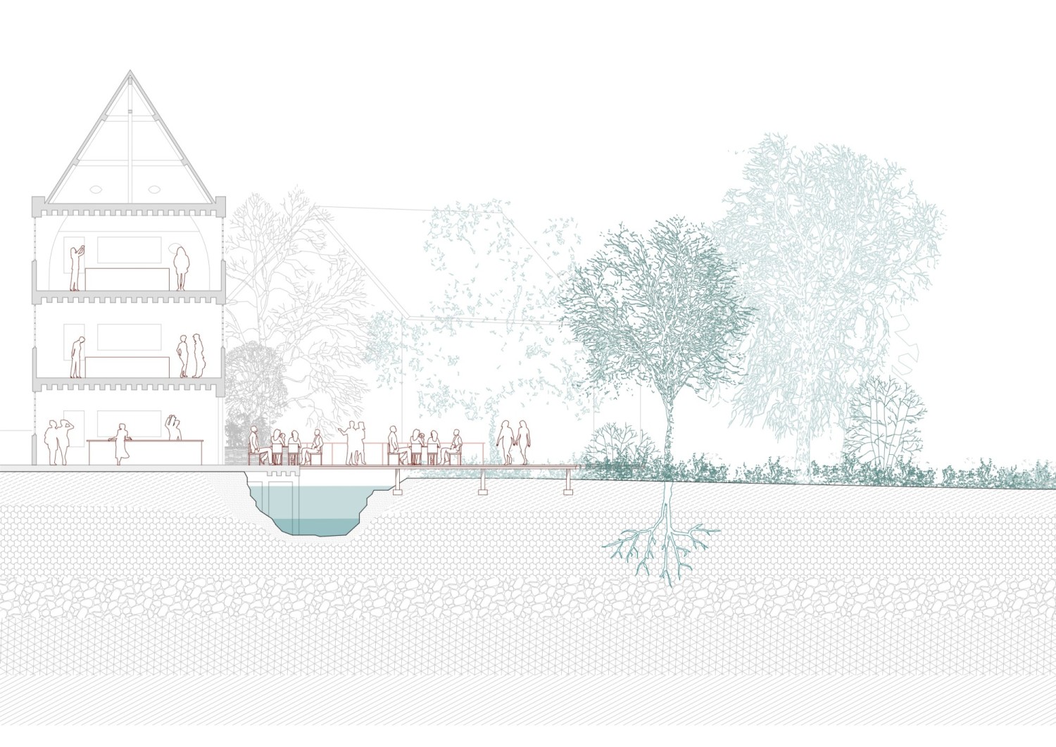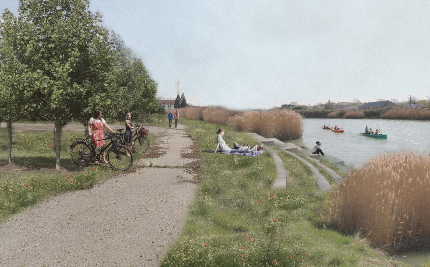Mandatée par la ville de Touques et la Direction départementale des territoires et de la mer du Calvados (DDTM 14), l’étude interroge la place de la commune de Touques au sein de sa vallée, reléguée aujourd’hui à l’arrière-plan des stations balnéaires de Trouville et de Deauville et scindée par un sillon d’infrastructures dont elle est support. Accolée à une route départementale qui sépare la ville de son fleuve, une zone d’activités économiques compose aussi Touques, la plus affluente de la communauté de communes, implantée sur d’anciens marais. Comment restituer de la visibilité au centre-bourg médiéval de cette ville ? Comment accompagner la mutation de la zone d’activités économiques ? Comment penser une nouvelle offre de logements qui s’adapte au risque d’inondations ? L’étude propose ainsi de repenser notre mode d’habiter en zone inondable avec une gestion de l’eau intégrée à chaque temps du projet. En cherchant d’une nouvelle transparence hydraulique, Touques renoue avec son histoire. Reliant le centre ancien aux berges de la Touques, une traversée accompagne la mutation de l’espace public qu’elle rencontre. Considérant le risque inondation auquel la commune est soumise, l’étude propose d’adapter l’espace public à l’accueil de l’eau, suivant une logique de gestion hydraulique à l’échelle de la vallée. Aussi, le dessin de l’espace public accompagne l’émergence d’une nouvelle identité urbaine, ancrée dans le paysage de la vallée.