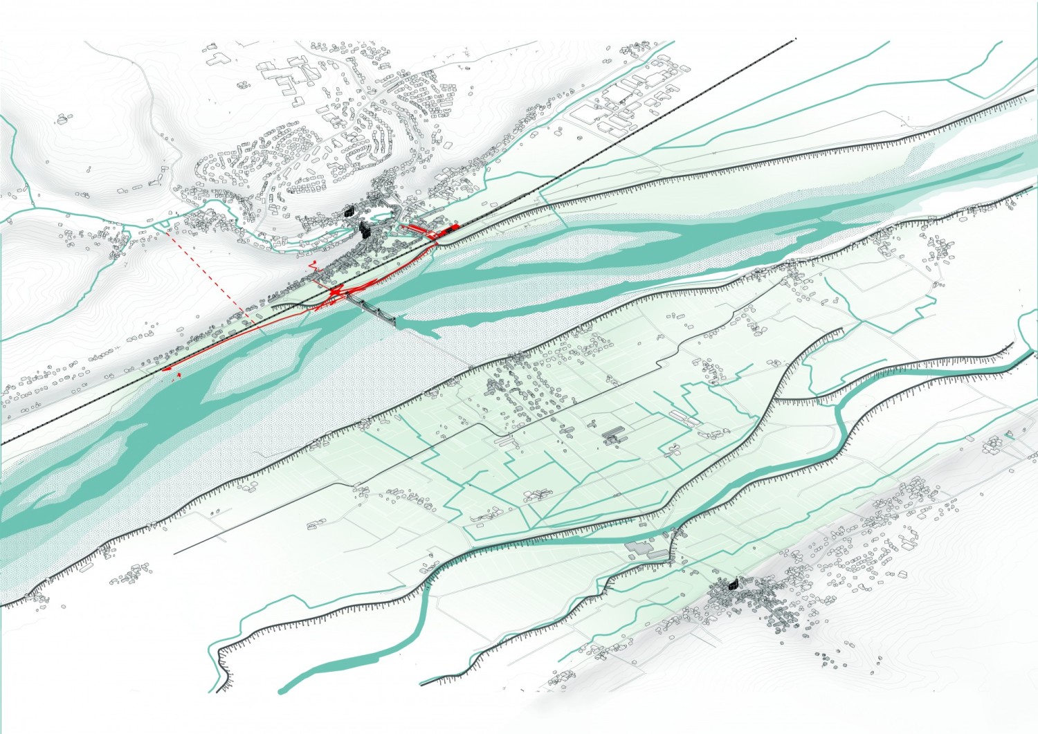 Le dessin du parcours étendu permet de révéler les différentes composantes du paysage ligérien. Le projet est ainsi conçu autour de la mise en valeur des ouvrages hydrauliques régulateurs des cours d’eau, comme les levées et les canaux. Il se fonde aussi sur les tracés issus de l’évolution du fleuve et qui constituent la richesse du paysage de la plaine alluviale. Des chemins adaptés aux différentes saisonnalités du lit majeur de la Loire se dessinent ainsi, soulignant le contraste entre ce paysage souple et instable et la pérennité des infrastructures qui s’y sont établies.