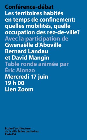 à 19:00École d'architecture de la ville & des territoiresL'École convie Gwenaëlle d’Aboville, Bernard Landau, David Mangin et Éric Alonzo pour discuter du futur de nos territoires et mobilités à…