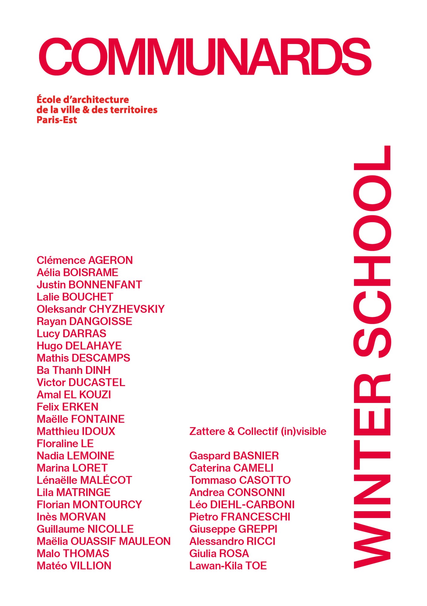 La winter School est un exercice intensif d’une semaine qui permet à plus de 250 étudiants de l’École et à des étudiants venus du monde entier de travailler de manière collective et transversale sur la thématique choisie par Thibaut Barrault, commissaire de cette 9e édition : le réemploi.