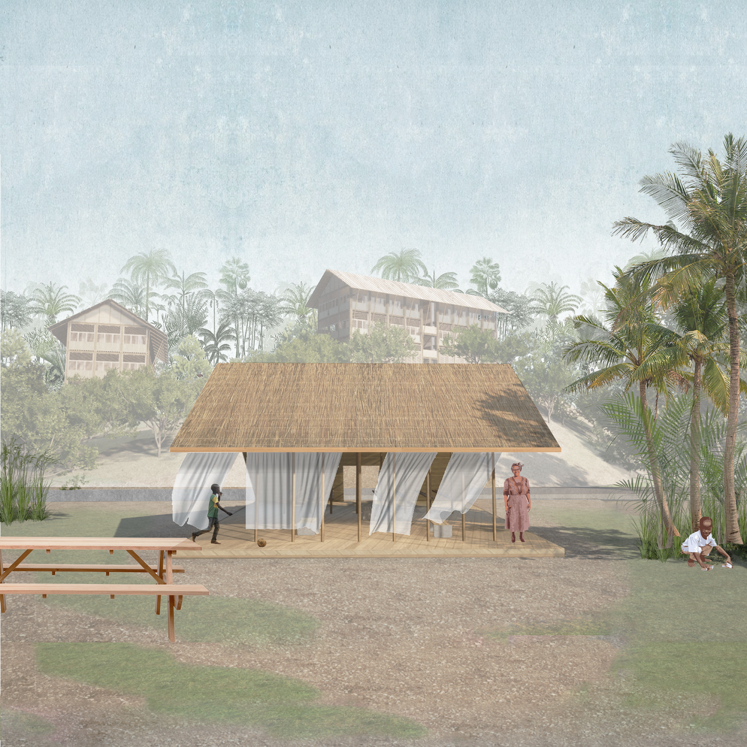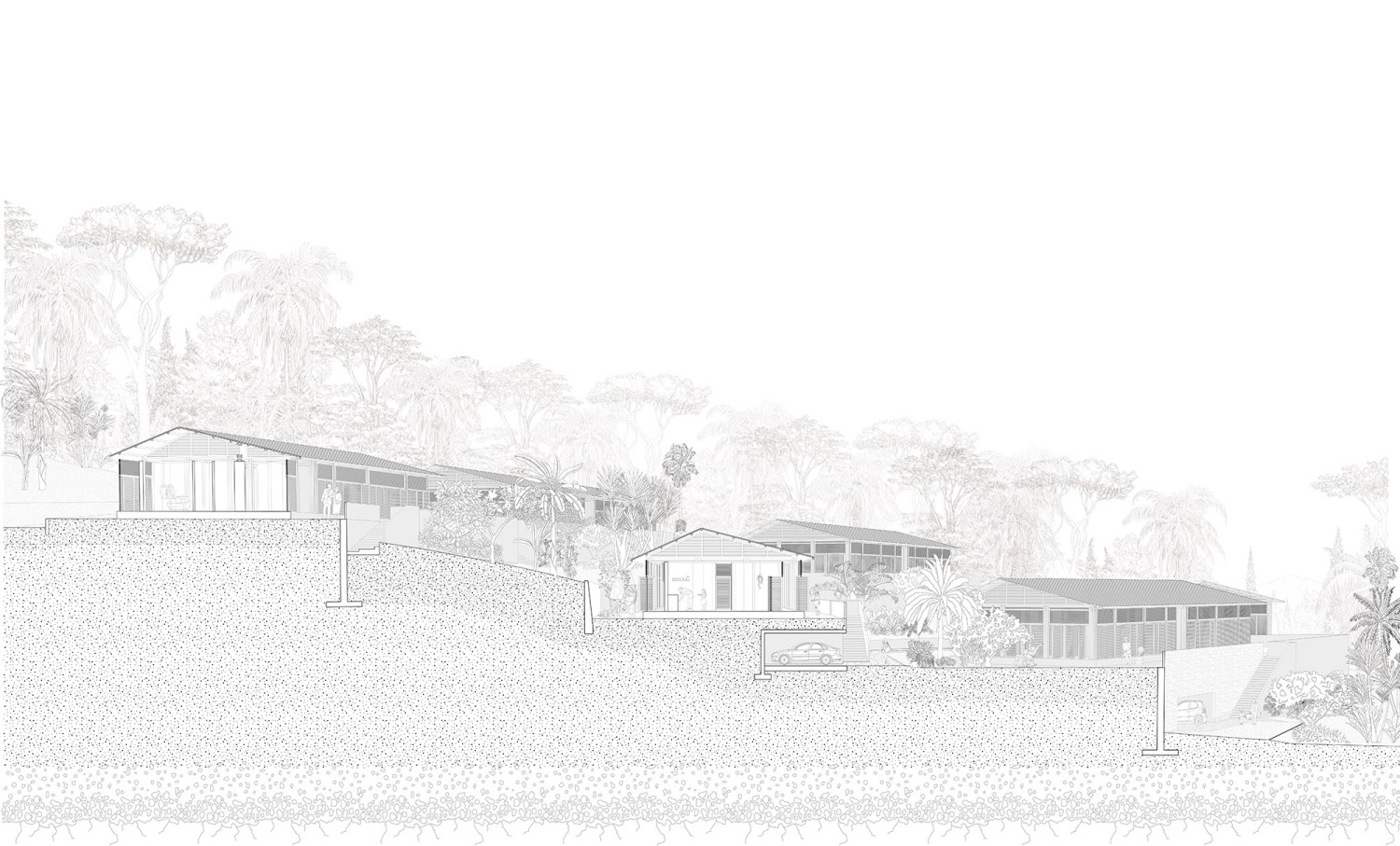 L’érosion du littoral est une problématique majeure partagée par les Petites Antilles. Elle nous pousse à revoir nos usages côtiers et à détourner le regard vers le reste du territoire. Mais s’intéresser à la profondeur nous confronte à d’autres aléas majeurs, qui combinés, posent des risques graves pour la population. Inciter une population habituée au risque à se déplacer, c’est initier un désir. En accompagnant la renaturation du littoral et en développant des infrastructures résilientes, le projet propose également de nouvelles approches pour habiter le paysage. Ainsi, en redéfinissant la relation entre le littoral et l’anthropocène, cela appelle à une véritable négociation entre l’homme et la mer, l’agriculture et l’habitat, la refondation et la renaissance, la résilience et la résistance, le repli et le repos.