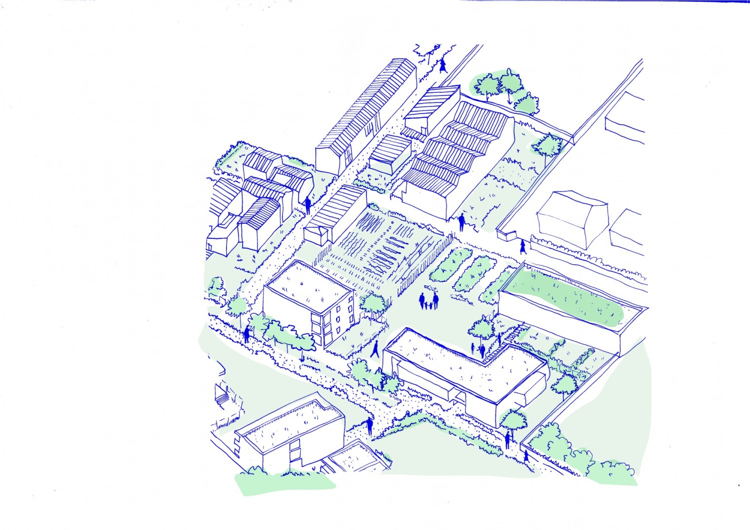 Dans le cadre du plan national Action cœur de ville, qui convoque 222 villes moyennes françaises, l’Office public de l’habitat (« Moulins Habitat ») met en œuvre une politique de renouvellement urbain durable à Moulins-sur-Allier. À travers les Orientations d’aménagement et de programmation (oap) du plu de trois secteurs situés dans les différents quartiers faubouriens, cette étude porte sur l’évolution de morceaux de ville en tenant compte de leurs spécificités urbaines propres, de leur ancrage territorial et de la dynamique globale d’une ville moyenne en décroissance. Il s’agira de réfléchir à ces situations intermédiaires situées entre le cœur de ville décroissant et la périphérie « expansive » comme support possible de renouvellement de la ville : travailler sur les anciens faubourgs dans l’objectif d’une revalorisation indirecte du centre et d’un nouvel accrochage de la commune à son grand territoire. Dans une première partie, nous analyserons de manière plus générale les qualités et caractéristiques du tissu de faubourg qui pourront être support de conception de l’aménagement des trois nouveaux quartiers. Ensuite, dans trois parties distinctes, il s’agira de mettre en parallèle les principes d’aménagement des OAP avec la réalité construite du site et de ses environs. Ce qui nous permettra de remettre en question ou de valider certains principes et de dépasser les logiques de secteurs des OAP afin de proposer des plans d’implantation qui ne soit pas ceux des nouveaux morceaux de ville mais plutôt ceux de quartiers intégré set respectueux des logiques préexistantes.