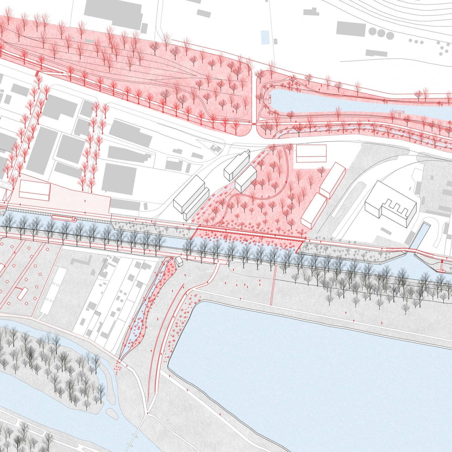 Dans le cadre du Schéma d’aménagement et de Gestion des Eaux Marne Confluence, situé dans la partie aval de la marne, le Syndicat mixte Marne vive met en œuvre une politique de reconquête de l’eau et de ses milieux comme atouts pour le développement du territoire. Basée sur une approche géographique, cette étude porte sur l’évolution du canal de Chelles comme support d’un large système de parcs. Elle vise un quadruple objectif : définir une zone de développement des cheminements doux et des espaces verts autour de l’ouvrage ; valoriser les voies d’eau comme supports pour l’industrie et la plaisance ; connecter les villes avec leurs espaces de nature et mobiliser le canal pour fédérer les acteurs du territoire autour d’une vision commune. Si le projet est ambitieux par son échelle, sa mise en place se veut simple : un minimum de moyens pour un maximum d’effet. Ainsi le cahier s’organise en deux parties : il présente dans un premier temps le système de parcs dans sa globalité et illustre les possibilités d’une mise en œuvre facilitée à l’échelle locale.