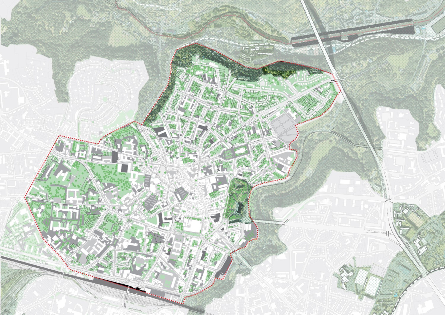 Mandaté par la Ville de Saint-Brieuc et la DDTM 22, le travail du DSA d’architecte-urbaniste de l’EAV&T intervient à la suite d’une série de plusieurs études déjà réalisées sur le territoire briochin. Cet ouvrage constitue également le second volet d’une commande qui réinterroge, à l’échelle intercommunale, l’avenir du centre-ville. En prenant comme postulat de départ le système de parcs développé lors du premier volet d’étude, il est montré que cette stratégie permettrait de résoudre pour partie les problématiques qui concernent actuellement le cœur historique de l’agglomération. En premier lieu, il est mis en évidence que l’évolution de Saint-Brieuc — de ville-jardin historique à ville dense « trop grise » au goût de ses habitants — étant en partie responsable de sa paupérisation, une série d’actions de requalification et de renaturation des îlots du centre urbain les rendrait à nouveau attractifs et permettrait de nouer un lien structurel entre le cœur de ville et le système de parcs. En second lieu, réinterrogeant l’armature urbaine du centre, il est proposé de corréler la trame historique de l’eau avec la politique actuelle de renouvellement et d’amélioration des équipements, afin de lui donner plus de lisibilité et de l’inscrire durablement au sein du territoire intercommunal.