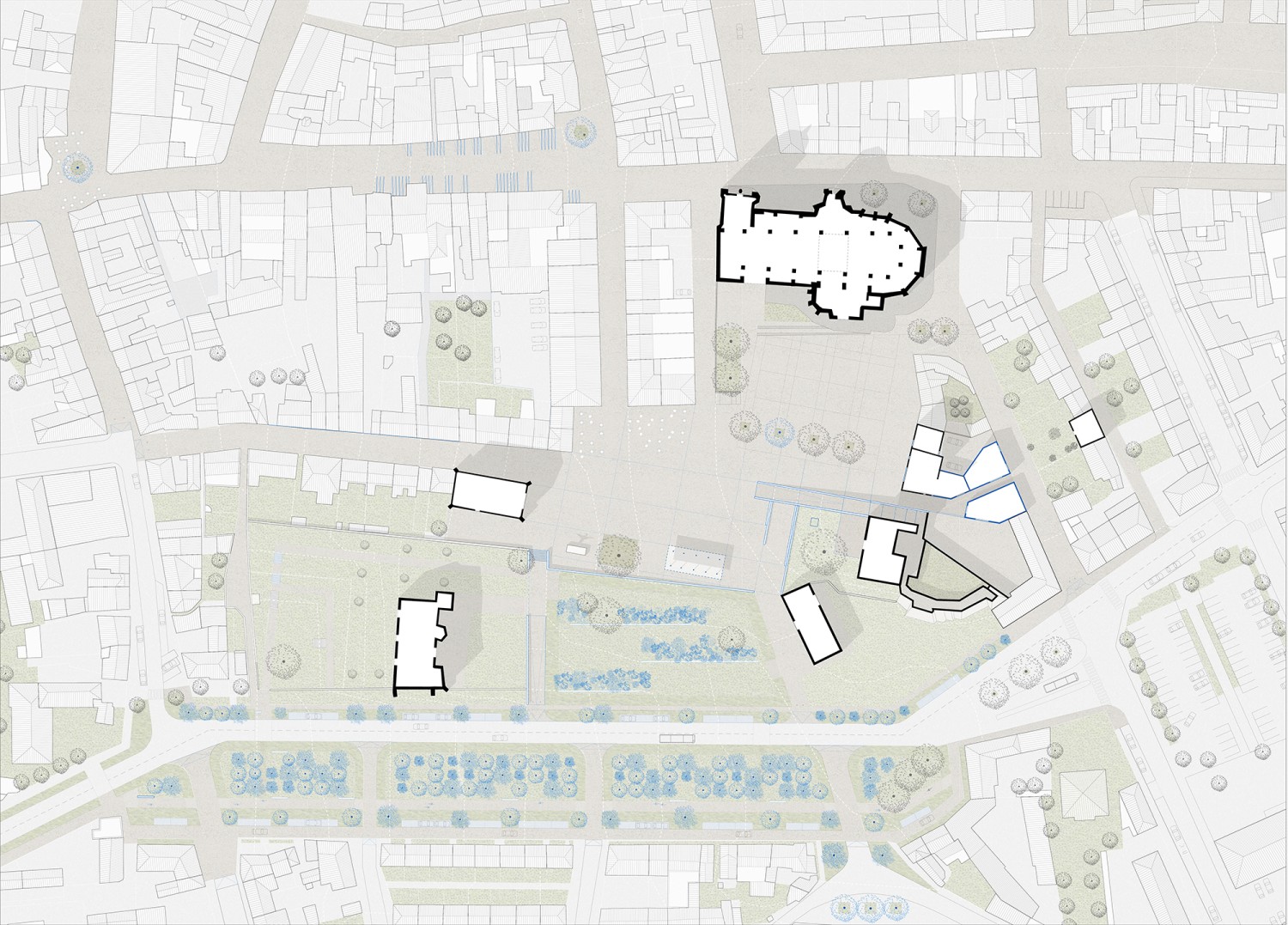 La désirabilité d’Argentan souffre aujourd’hui de l’image froide et minérale d’une ville de la Reconstruction. En effet, son noyau médiéval fortifié combiné à l’application des principes de l’urbanisme moderne après la Seconde Guerre mondiale, en font aujourd’hui une ville faite pour l’automobile dans laquelle l’accessibilité au piéton est réduite, questionnant ainsi l’application du concept de « ville marchable ». De plus, le faible rapport qu’entretient la ville avec l’Orne et avec le paysage de bocage conduit à s’interroger sur la présence de ces entités naturelles vis-à-vis du maillage urbain. Afin de répondre aux problématiques de visibilité et d’accessibilité au centre-ville, mais également de mobilité, d’habitat et de préoccupations environnementales, cette étude envisage l’espace ouvert comme un élément vecteur de transformation et d’amélioration de la qualité de vie. Qu’il s’agisse d’aires de stationnement, d’espaces naturels, de lieux publics, de délaissés urbains ou encore de paysages agricoles, la générosité d’espaces ouverts dont a hérité Argentan incarne un levier de valorisation permettant de transformer l’image de cette ville de la Reconstruction et de favoriser la cohésion entre le grand territoire et l’hypercentre d’Argentan. L’étude associe enjeux territoriaux et interventions à plus petite échelle sur des fragments de ville. L’espace ouvert du territoire interroge les continuités de cheminements cyclables, pédestres et équestres s’inscrivant dans une logique de circuit touristique autour d’éléments patrimoniaux et paysagers. Le paysage naturel de l’Orne avec la lisière de ville, qui fait lien entre l’espace urbain et le paysage, nous interroge sur ses enjeux de densification et de diversité programmatique. Le paysage productif avec la zone artisanale se raccroche aux enjeux de production et de redistribution de l’alimentation sur le territoire. Dans une seconde partie, le projet s’attache à l’espace ouvert de la ville et tente de résoudre le problème de sur-aménagement des rues du centre-ville, et notamment de la rue commerçante, afin de permettre la création d’un espace de déambulation apaisé pour le piéton et les autres mobilités douces. Enfin, le centre historique devient un sujet de transformation principal de l’espace public et de son dialogue avec intercommunalité. Il inclut ainsi la redéfinition du profil de voirie du boulevard Général de Gaulle, la recomposition de l’îlot médiéval du rempart, ainsi que l’aménagement de la place du marché en lien avec un véritable jardin en cœur de ville.