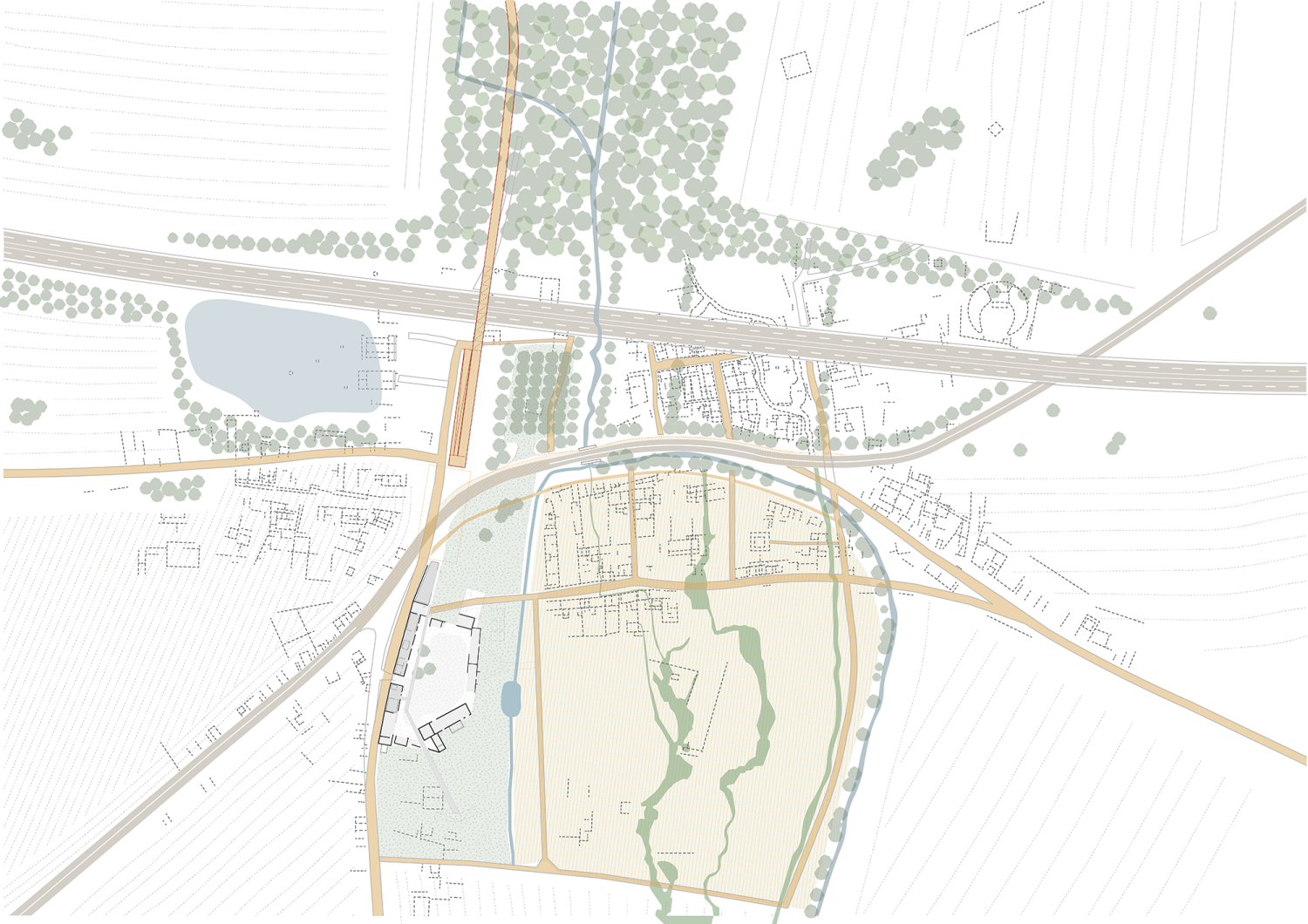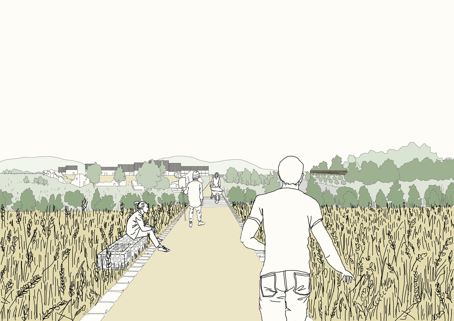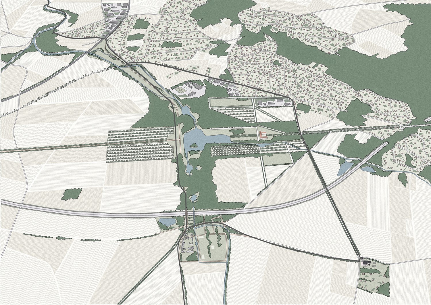 Le point de départ de cette étude est la ferme d’Ithe, ancienne grange cistercienne du XIIe siècle continuellement reconstruite et utilisée jusque dans les années 1960. Ses fondations reposent sur les ruines de la cité gallo-romaine de Diodurum, mises à jour lors des fouilles préventives du chantier de déviation de la RN 12. Ces découvertes s’ajoutent à la grande variété de sites patrimoniaux de haute importance que compte la plaine de la Haute Mauldre, un territoire agricole au cœur des Yvelines. Sites archéologiques, châteaux classiques, églises romanes, bourgs médiévaux, maisons de personnalités célèbres du XXe siècle… C’est pour valoriser et mettre en lien cette richesse ignorée et élargir le cadre de la réflexion patrimoniale à l’échelle territoriale que la Drac Île-de-France, en partenariat avec l’ApsaD, a mandaté le DSA d’architecte-urbaniste. Partant du site de la ferme d’Ithe, dont l’aménagement à l’échelle architecturale est déjà engagé, la commande s’attelle à la mise en place d’un Centre d’interprétation archéologique et patrimonial (CIArP) à grande échelle. Entre problématiques ordinaires du périurbain français et dimension culturelle exceptionnelle, l’étude se doit de repenser la mise en valeur du patrimoine et son intégration dans la vie quotidienne à l’aune des grands enjeux environnementaux de notre ère. En se penchant sur les traces du passé et leurs persistances, il s’agit de comprendre les modes de vie et de déplacement qui ont façonné le paysage d’aujourd’hui et de s’interroger sur celles qui caractériseront le siècle à venir. La grande échelle du Centre d’interprétation permet non seulement d’enrichir les éléments patrimoniaux d’un contexte physique et historique élargi, mais est aussi l’occasion d’intégrer les enjeux urbains et paysagers du territoire au projet culturel. Le CIArP à grande échelle prend la forme d’un maillage de mobilités douces qui tisse un réseau continu sur l’ensemble de la plaine de la Haute Mauldre. Médiateur de l’histoire et de la géographie de ce territoire, ce maillage se veut aussi être un support pour de nombreux projets, vecteurs de développement à l’échelle de la plaine. La réponse apportée par le DSA, qui prend la forme d’une infrastructure territoriale légère, est l’occasion de fédérer l’ensemble des acteurs locaux autour d’une démarche partagée, qui participe à repenser des modes de vie et de déplacement et à s’inscrire dans les transitions en cours en s’appuyant sur la riche histoire qu’ils partagent.