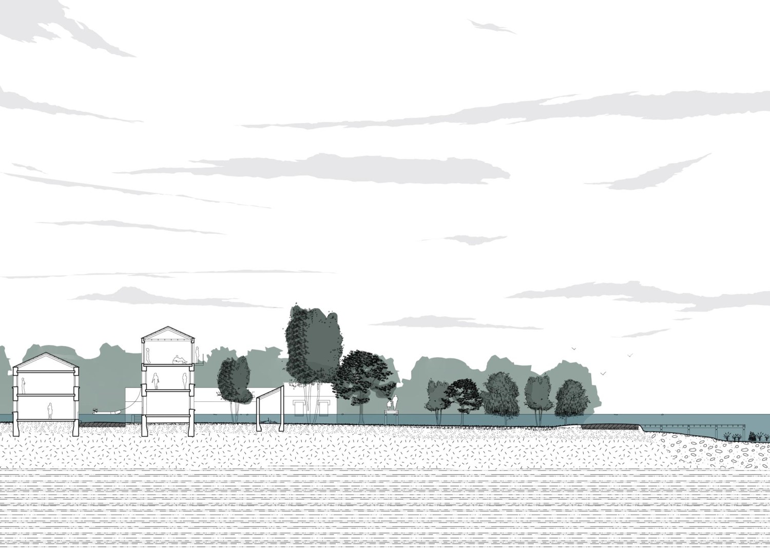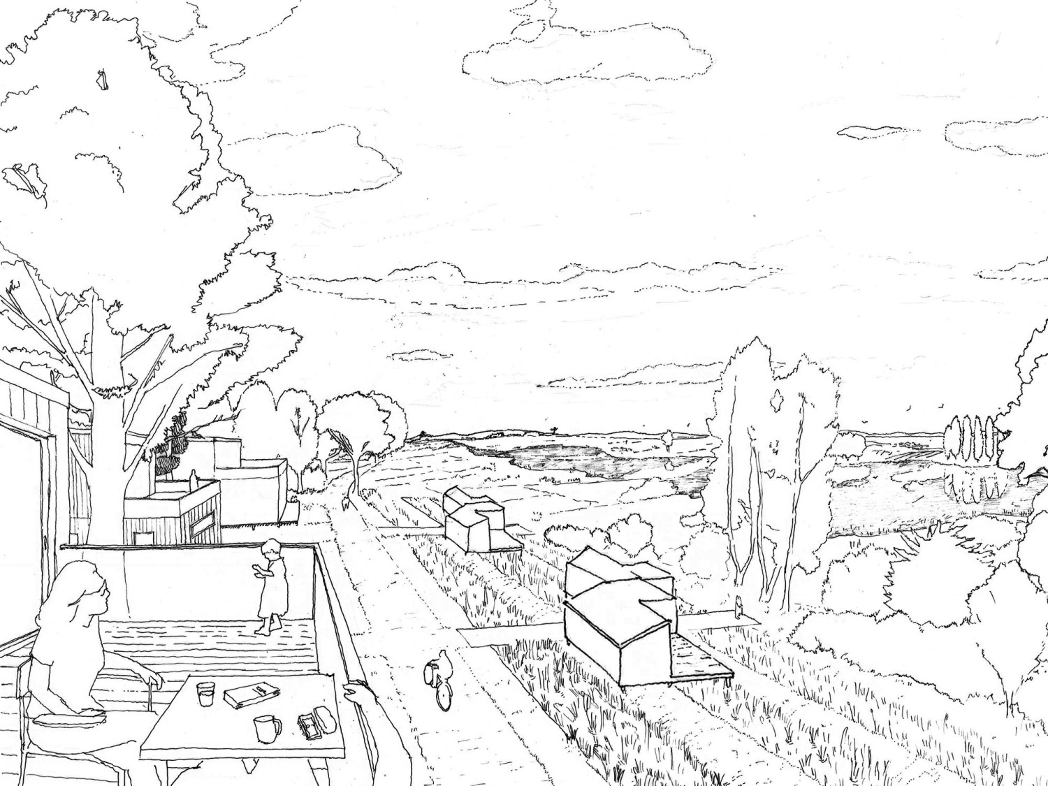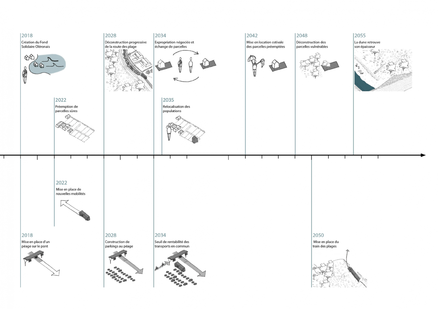 Enfin nous développons cinq projets pilotes qui visent à imaginer différentes manières d’habiter l’épaisseur retrouvée du littoral, entre les bourgs historiques, implantés sur la crête géologique, et la plage rendue à son état de nature.