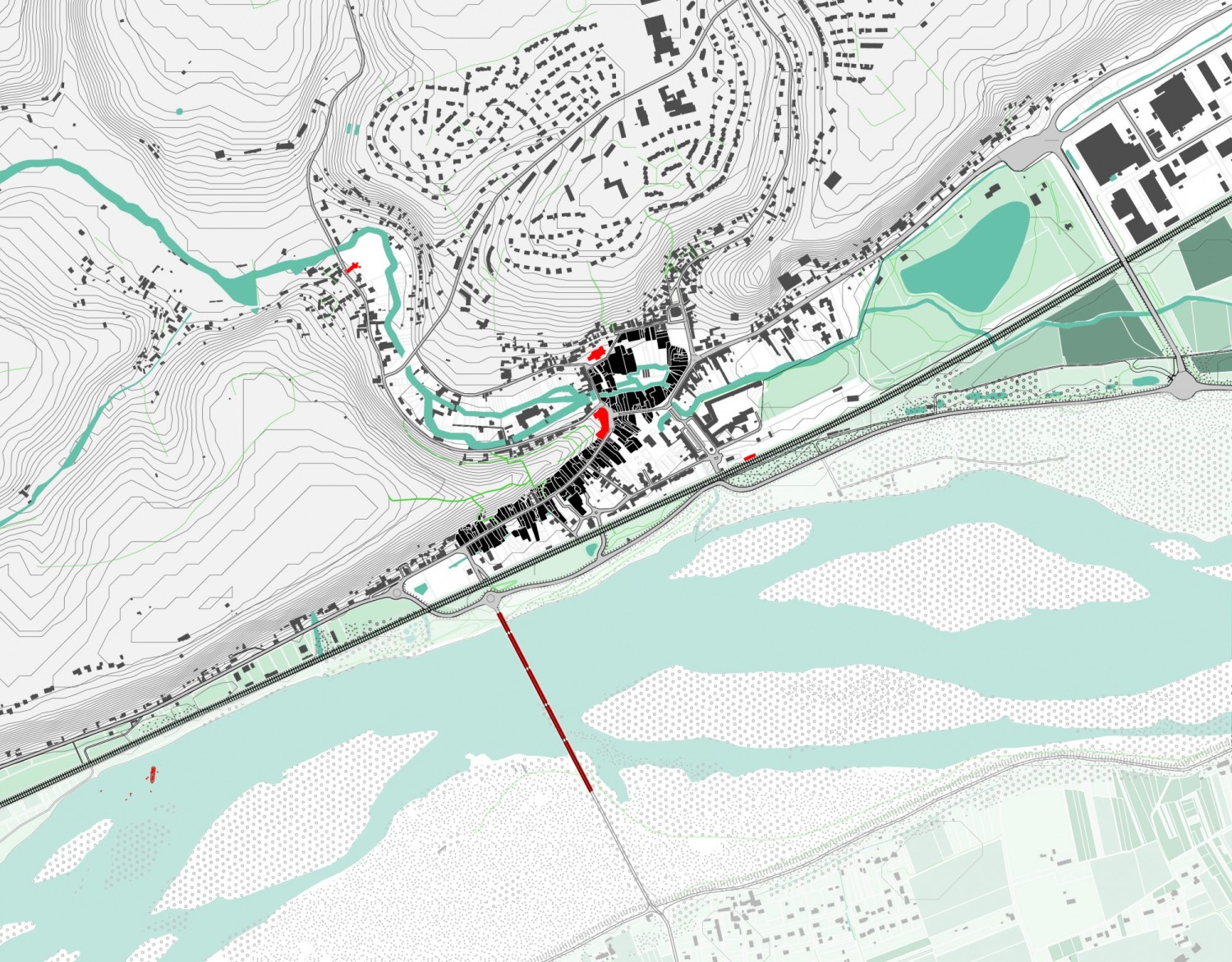 L’étude de faisabilité d’un site d’interprétation autour de l’épave du chaland conduit dans un premier temps à un travail de reconnexion entre le centre de Langeais et la Loire. Dans une seconde partie, le champ d’analyse s’étend au-delà du lit endigué et investit l’ampleur du lit majeur du fleuve. Le site d’interprétation prend alors la forme d’un parcours transversal allant du coteau de Langeais à celui qui lui fait face, à Lignières-de-Touraine, en passant par la commune de la Chapelle-aux-Naux dans la plaine alluviale.