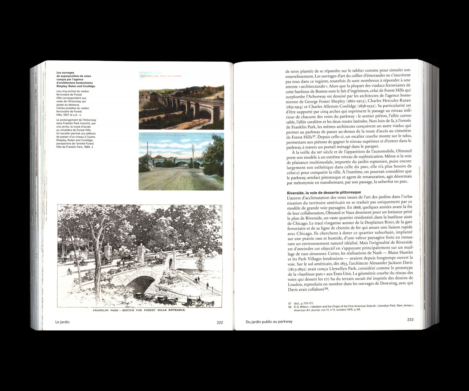Le prisme de la voie permet alors de révéler, par une série de « coupes en long » qui couvrent de longues périodes (paradigmes de l’édifié, du jardin et du flux), une tradition qui associe étroitement les savoirs et les objets des architectes, des ingénieurs, des paysagistes et des urbanistes, considérés aujourd’hui comme autant de domaines distincts. Cette publication se présente ainsi comme une somme historique, largement inédite, sur une « architecture du territoire » envisagée comme le socle commun des disciplines de l’aménagement.