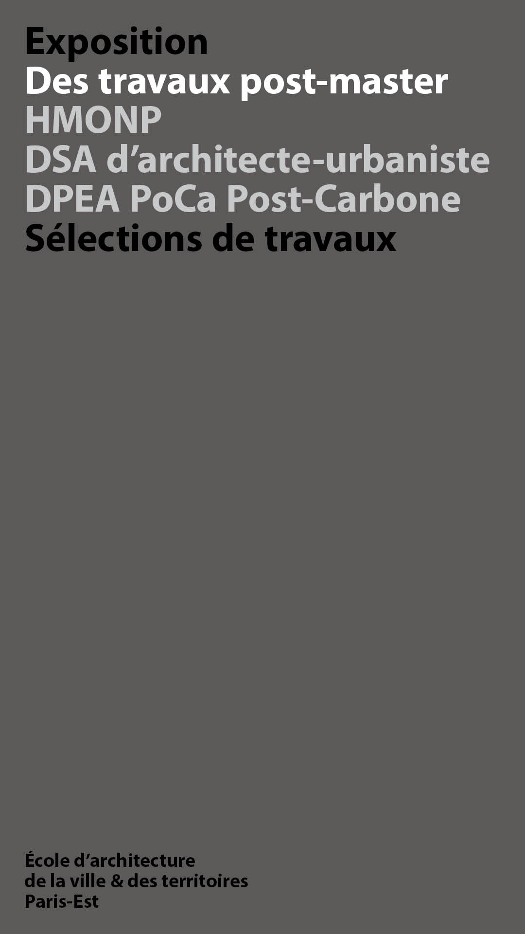 | DSA d'architecte-urbaniste | Léonard Bougault, Mathilde Catalan, Axel Galzin, Hortense Goupil, Emilien Josseau, Oscar Schlumberger,Louise André, Florian Moniot, Clémence Poitevin, Morgan Le Dily, Florian Moniot, Laura Verneau, Mathilde Loiseau, Natasha Muszkat, Lou Papelier, Louis Richard, Ernest Blanch, Jean-Christophe Collognat, Lou Papelier, Richard You, Marine Bissinger, Andrei Corbet Nits, Bertrand Salaun, Nicolas Cazabat, Quentin Jézégou, Esther Morin, Myriam Richter |